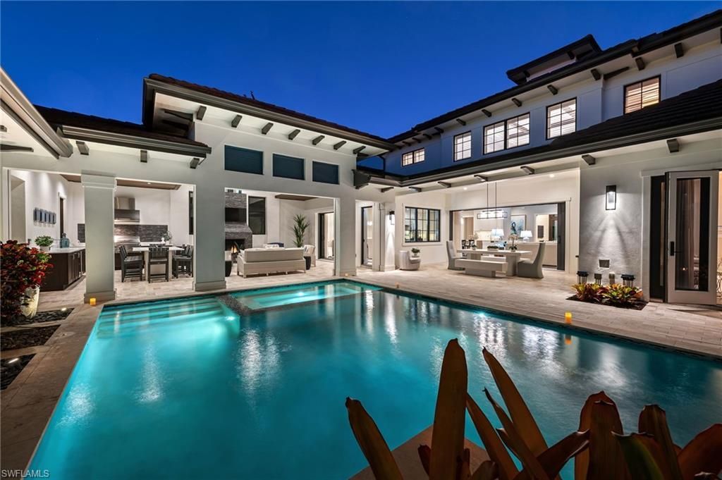The Jewel of the Moorings. 1st time offered since completion! MHK Architects custom designed a masterpiece with 4 bedrooms, den, 4 full & 2 half baths. Nestled on an expansive corner lot (.42 acres) in the FEMA X. Over 6400 sqft. under roof & 4333 sqft. Of interior luxurious living. Walls of windows bring nature’s beauty to every room. A private 1st floor master sanctuary with spa-like bath provides respite from the outside world. Custom designed his/her California closets enhance the ...The Jewel of the Moorings. 1st time offered since completion! MHK Architects custom designed a masterpiece with 4 bedrooms, den, 4 full & 2 half baths. Nestled on an expansive corner lot (.42 acres) in the FEMA X. Over 6400 sqft. under roof & 4333 sqft. Of interior luxurious living. Walls of windows bring nature’s beauty to every room. A private 1st floor master sanctuary with spa-like bath provides respite from the outside world. Custom designed his/her California closets enhance the experience. Interior elements boast the finest finishes, inlaid wood ceilings and soaring 22’ great room ceiling. Curated furniture and interior design elements present an aura of coastal elegance for days of relaxation or entertaining. Gourmet kitchen with gas cooking, Dual Quartz islands, with exceptional counter space & custom cabinetry, Subzero & Wolf appliances ready for culinary artistry. The 2nd floor encompasses 3 en-suite bedrooms, a family room & morning kitchen. Spacious, secluded yard with unique & tranquil Sun Park, saltwater resort pool, entertainment area, covered living room, fireplace, kitchen, dining room and lanai. 3-car garage, impact glass, electric shutters/screens, and house generator complete the package. Offered fully furnished. Every desire met! Private Moorings Beach Park is a short stroll away!