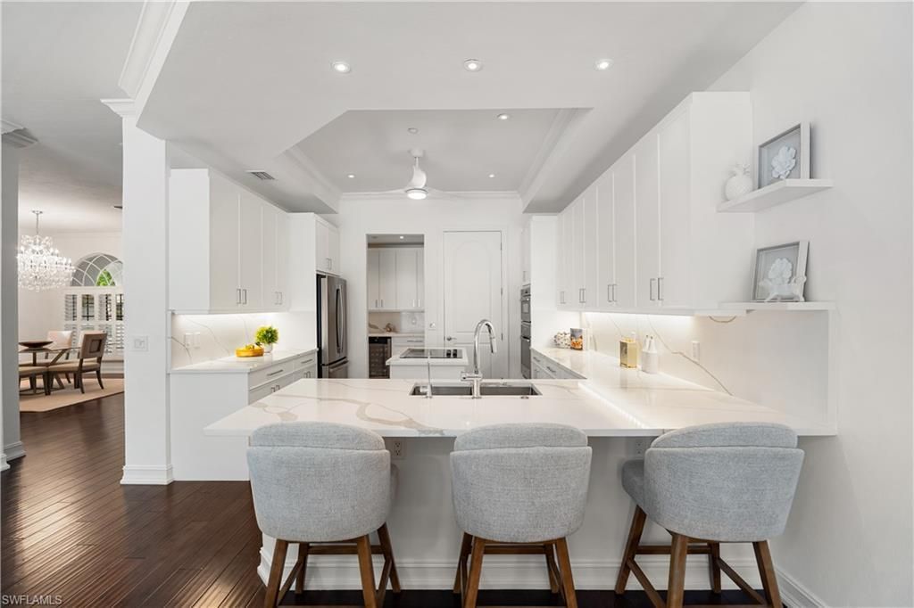 Experience refined Villa Pienza living in this elegant end-unit residence west of 41, where sun-drenched interiors, modern finishes, and the ease of maintenance-free living blend seamlessly in a home that lives like a private single-family retreat. Inside, natural light fills the spacious great room and flows into a bright modern kitchen appointed with an island, butler’s pantry with dry bar and wine fridge, and an inviting dining area ideal for both relaxed gatherings and elevated entert...Experience refined Villa Pienza living in this elegant end-unit residence west of 41, where sun-drenched interiors, modern finishes, and the ease of maintenance-free living blend seamlessly in a home that lives like a private single-family retreat. Inside, natural light fills the spacious great room and flows into a bright modern kitchen appointed with an island, butler’s pantry with dry bar and wine fridge, and an inviting dining area ideal for both relaxed gatherings and elevated entertaining. Hardwood floors and timeless design elements create a warm, sophisticated ambiance throughout. The first-floor primary suite provides a peaceful sanctuary with ample closet space and a serene, spa-inspired bath. Upstairs, two generously sized guest bedrooms and a versatile den offer an ideal layout for visitors, work, or quiet leisure, while two private balconies welcome fresh breezes and soft Naples light. Outside, a private backyard oasis awaits—lush landscaping, a trellised lanai, awning, south-facing pool, and an open deck designed for sun-soaked afternoons and intimate evenings. Situated in the highly desirable west-of-41 corridor and within the X-500 flood zone, this pet-friendly villa combines the freedom of maintenance-free living with the comfort, privacy, and scale of a single-family home. Clam Pass and Seagate Beach are just moments away, while Waterside Shops, Venetian Village, and downtown Naples offer premier shopping and dining within easy reach. Light, bright, and effortlessly elegant—this villa embodies the best of luxury living in Naples.
