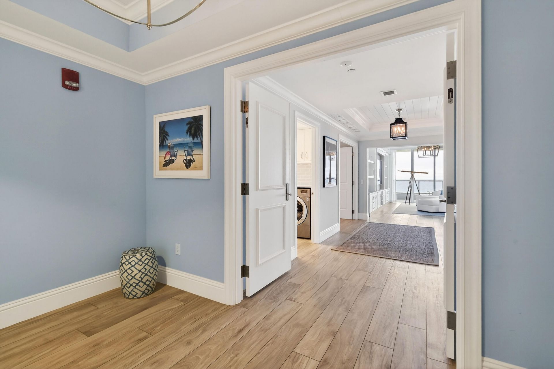 This exceptional 3-bedroom, 3.5-bath oceanfront residence offers approximately 3,100+ square feet of refined living space within the boutique Ocean's Edge building and truly lives like a private home. A private elevator opens directly into the main foyer, where split French doors introduce luminous interiors defined by direct Atlantic Ocean views, floor-to-ceiling impact glass, statement chandelier fixtures, and white shiplap tray ceilings that establish a serene coastal aesthetic inspired by so...This exceptional 3-bedroom, 3.5-bath oceanfront residence offers approximately 3,100+ square feet of refined living space within the boutique Ocean's Edge building and truly lives like a private home. A private elevator opens directly into the main foyer, where split French doors introduce luminous interiors defined by direct Atlantic Ocean views, floor-to-ceiling impact glass, statement chandelier fixtures, and white shiplap tray ceilings that establish a serene coastal aesthetic inspired by soft whites and baby blues. Elegant crown moulding, coffered ceilings, and thoughtfully layered architectural detailing elevate the home's timeless design while maintaining a relaxed yet sophisticated seaside elegance.The open-concept living and dining areas are framed by sweeping panoramic ocean vistas and finished with porcelain wood-grain plank flooring, custom recessed lighting, and a built-in modern entertainment center. Fully integrated with a Control4 smart-home system, the residence offers phone-operated control of lighting, HVAC, television, and a Sonos sound system. Main living area and primary bedroom offer remote electric shades. Walls of glass open seamlessly to an expansive oceanfront terrace, accessible from both the main living area and the primary suite, creating an effortless indoor-outdoor lifestyle ideal for entertaining or quiet moments overlooking the sea.Multiple dining spaces are thoughtfully incorporated throughout the home, including a formal dining area, a breakfast nook positioned at the edge of the ocean, and an expansive kitchen peninsula offering versatility for intimate meals or hosting on a grander scale.The gourmet chef's kitchen is anchored by an exceptional appliance suite, including a Miele double oven with warming drawer, Miele built-in coffee maker, Wolf gas cooktop, Wolf microwave, Bosch dishwasher, and a Sub-Zero refrigerator and wine cooler. Additional features include a built-in filtered water dispenser and garbage disposal, along with decorative tile backsplash, custom cabinetry, generous prep space, and refined under-counter storage with glass display doors along the formal dining side making the kitchen both a functional workspace and an elegant focal point for gathering.The primary suite serves as a serene oceanfront retreat, offering direct ocean views, private terrace access, a decorative feature wall with custom dimmable lighting. A thoughtfully designed coffee bar with U-Line under-counter refrigerator enhances everyday comfort. The spa-inspired bath is complemented by an oversized walk-in closet with custom built-in shelving, providing exceptional storage and organization.The guest wing is equally impressive, offering privacy and comfort with two ensuite bedrooms that capture city skyline and Intracoastal views, enhanced by designer finishes and custom built-in wall shelving.This layout balances scale and livability reinforcing the residence's rare ability to feel both expansive and intimate, truly living like a single-family home in the sky. Additional features include a full-size laundry room with LG washer and dryer and ample storage throughout.With only 40 exclusive residences, Ocean's Edge delivers a boutique, resort-style experience that redefines oceanfront living. Amenities include a heated oceanfront pool and spa, outdoor grilling area, state-of-the-art fitness center, private movie theater, elegant social room. A 24-hour manned security gate, concierge service, and controlled-access parking provide exceptional peace of mind, while private gated access leads directly to Singer Island's pristine white-sand beaches. Beach loungers and umbrella service provided. Beyond the residence, Singer Island offers a vibrant coastal lifestyle with access to John D. MacArthur Beach State Park, championship golf courses, and world-class shopping and dining in Palm Beach Gardens and on Worth Avenue in Palm Beach. Conveniently located near Palm Beach International Airport, Ocean's Edge seamlessl